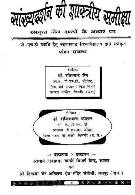 Sankhyadarshan ki shastriya samiksha